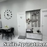 Apartament Smile dispose de 1 chambre à coucher. Il y a 1 salle de bains avec une douche à l'italienne, fournis pour le confort des hôtes. Vous trouverez également un sèche-cheveux, un bonnet de douche et des draps de bain.